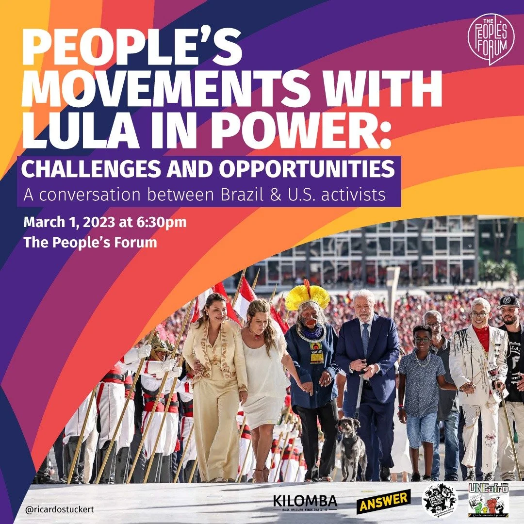 Co-organized by The People’s Forum, Defend Democracy in Brazil – NY, Coletivo Kilomba and UNEafro